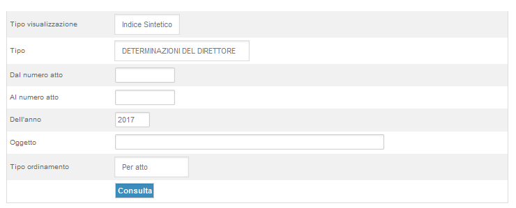 - tipo ⇒ codice opzionale per specificare la tipologia atto in cui effettuare la ricerca