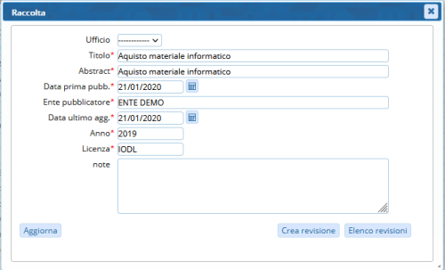 Verrà aperta una nuova finestra per l’inserimento dei dati richiesti, la stessa form di modifica con bottoni differenti per l'inserimento