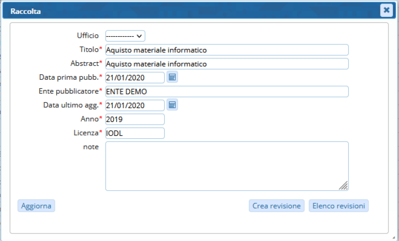 ATTENZIONE: la revisione viene associata con l'anno corrente. Si raccomanda di verificare ed eventualmente modificare l'anno di riferimento.
