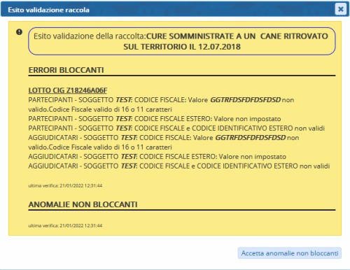 L'utente può ACCETTARE questo tipo di errori premendo sul bottone “Accetta anomalie non bloccanti”.