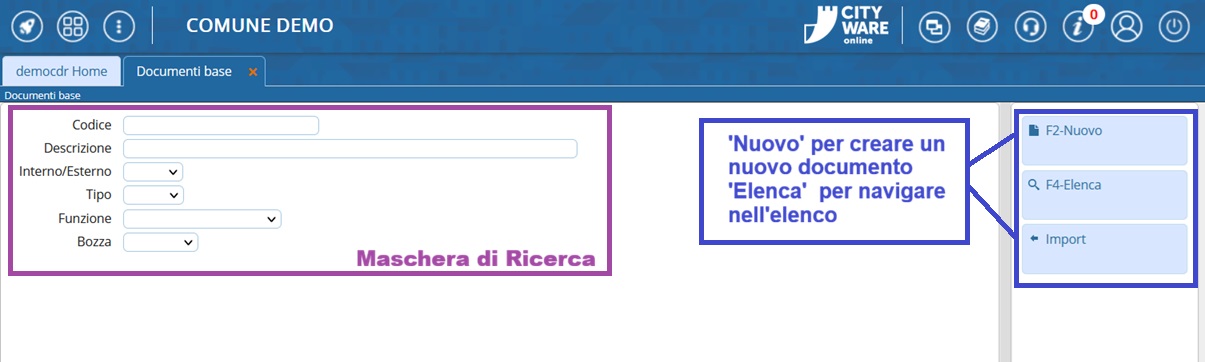 - Con [Nuovo] potremmo inserire un nuovo documento