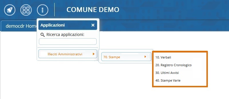 - REGISTRO CRONOLOGICO: Stampa il registro cronologico delle violazioni.