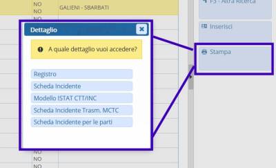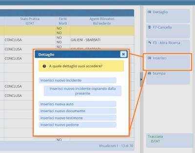 - Se, invece, siamo entrati nell'elenco, da qui selezionare il comando [ Inserisci ], sempre presente sulla destra del nostro schermo. In questo caso vi comparirà la domanda “A quale dettaglio vuoi accedere?” su cui cliccheremo [ Inserisci Nuovo Incidente ] per confermare.