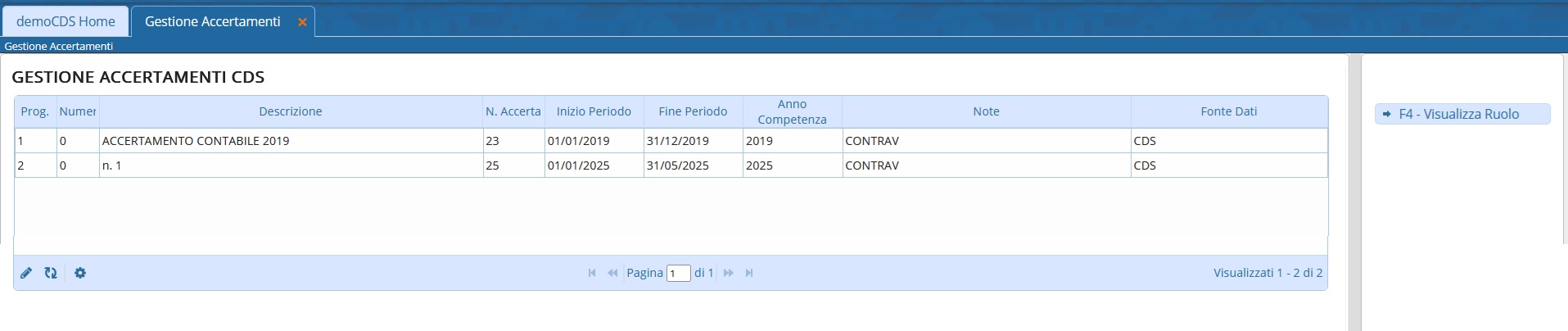 Dai tre puntini e andando nella sottosezione 'Accertamenti CDS' potremmo visualizzare l'elenco degli Accertamenti Contabili CDS che abbiamo inserito in precedenza (compresi quelli più recenti!).