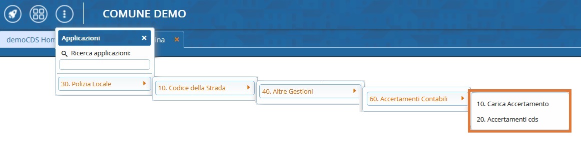 ▶ Codice della Strada ▶ Altre Gestioni ▶ Accertamenti Contabili