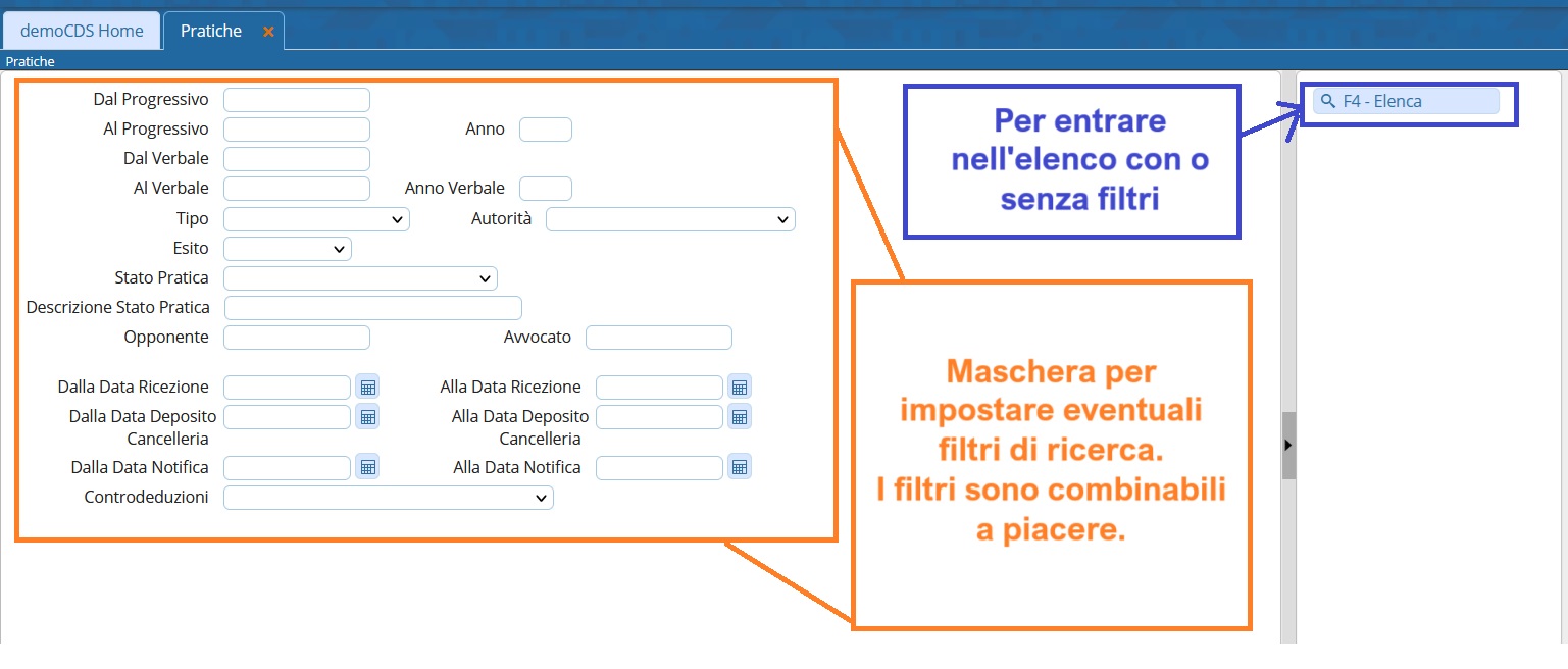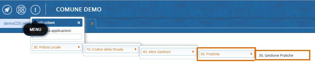▶ Codice della Strada ▶ Altre Gestioni ▶ Pratiche ▶ Gestione Pratiche