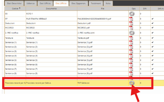 Nel tab 'Doc. Ufficio' andremmo a caricare eventuali documenti relativi all'atto e, per quelli che vogliamo inserire nello zip, bisognerà cliccare sulla colonna SAN.A. per spuntarla.