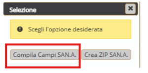 Cliccare sulla “rotella” nella riga del file SAN.A. e poi su [Compila Campi SAN.A.]