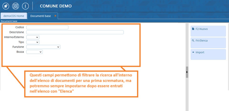 - Con [Nuovo] potremmo inserire un nuovo documento