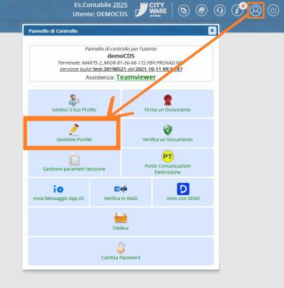 , posizionato in alto a destra, in modo che si apra il Pannello di Controllo e scegliere l'opzione “Gestione Portlet”.
