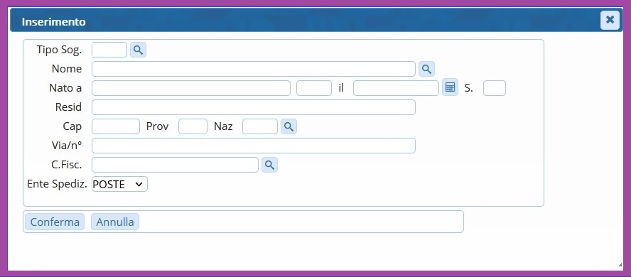 - possiamo cambiare il Tipo Sogg. attraverso la lentina di ingradimento