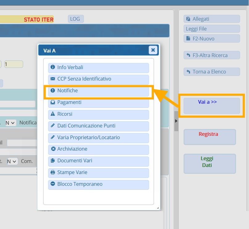 Attraverso il bottone [Vai a » Notifiche] presente nella Scheda di ogni verbale