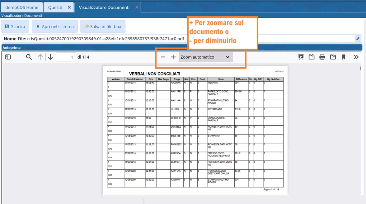 Cliccando su uno qualsiasi di questi bottoni vi comparirà in elenco tutti quei verbali che rispettano le caratteristiche indicate.