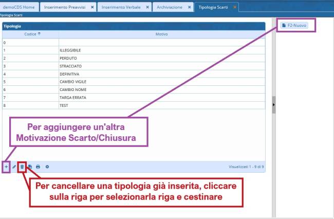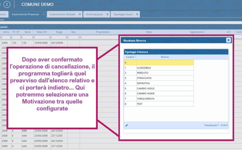 Se non si vuole verbalizzare il preavviso con l'archiviazione, l'altra operazione che è possibile fare è cancellare DEFINITIVAMENTE il preavviso.