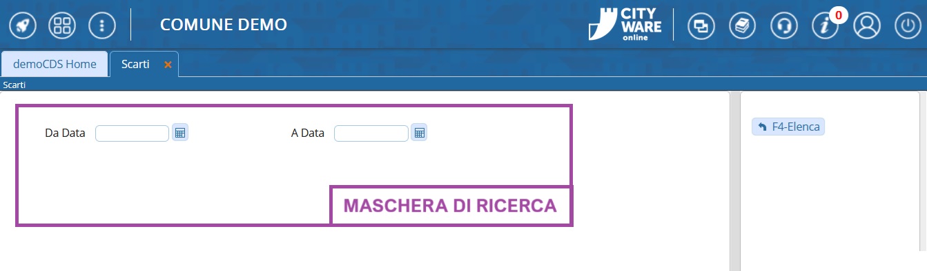 Andando in questa sezione del porgramma, nella schermata di partenza si potrà impostare un periodo di tempo specifico per filtrate la ricerca. In alternativa possiamo entrare nell'elenco dei preavvisi scartati senza impostare alcun filtro facendo direttamente clcik sul pulsante [Elenca]