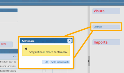 Per stampare un repilogo, cliccare su [Stampa] a destra, sotto il pulsante Visura.
