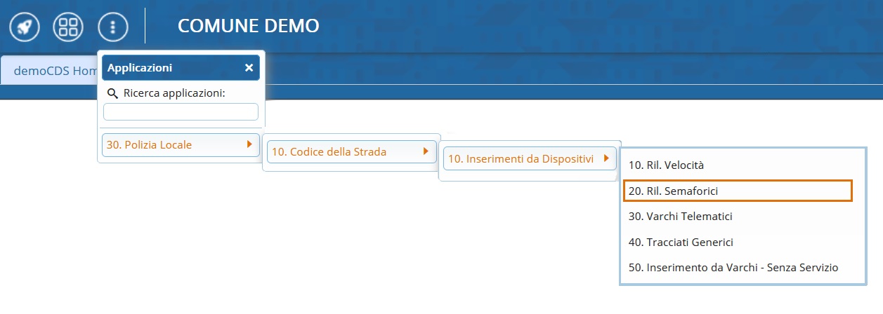 ▶ Codice della Strada ▶ Inserimento da Dispositivi ▶ Ril. Semaforici