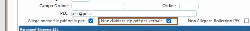 È anche possibile dividere i pdf in cartelle separate con la spunta “Non dividere zip pdf per verbale” (il parametro è attivo con la presemza della spunta bianca su sfondo blu)