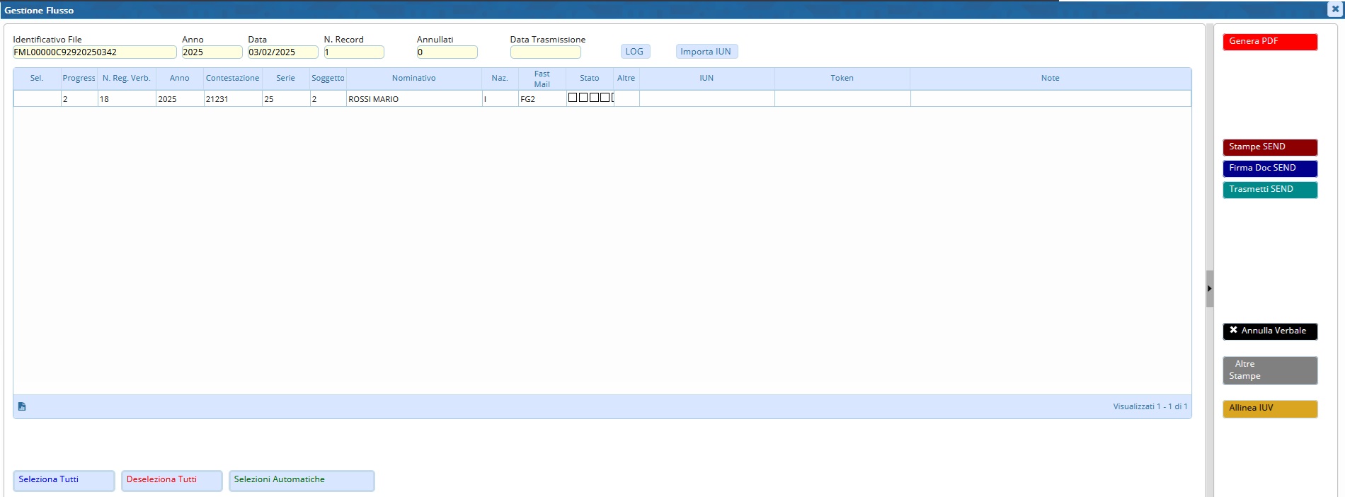 - Importa IUN: Funzione che richiama l’importazione degli IUN e li associa al verbale. Se la procedura è andata a buon fine e gli IUN sono disponibili la colonna “IUN” nella griglia sarà popolata.