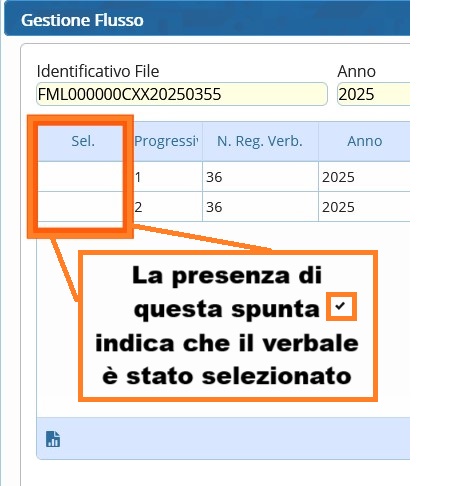 Nota: La presenza di una spunta indica che il verbale è stato selezionato
