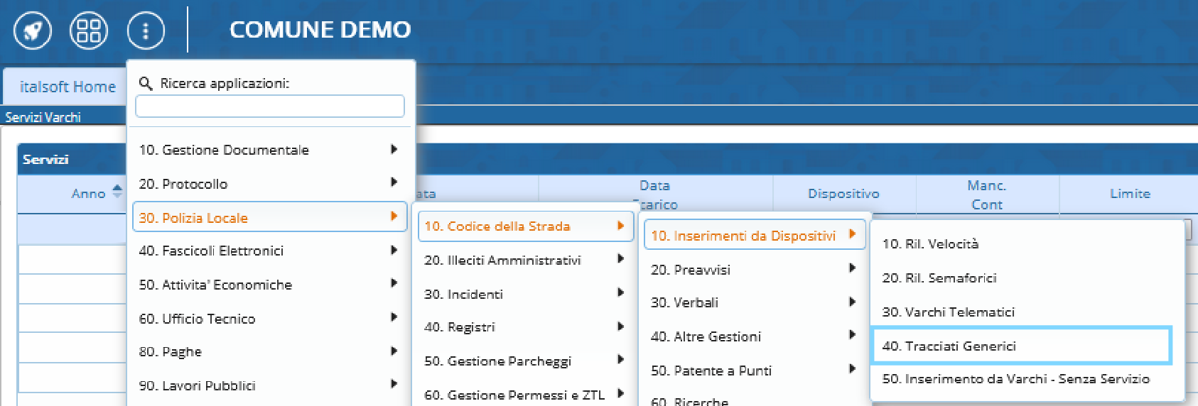 ▶ Codice della strada ▶ Inserimento da Dispositivi ▶ Tracciati Generici