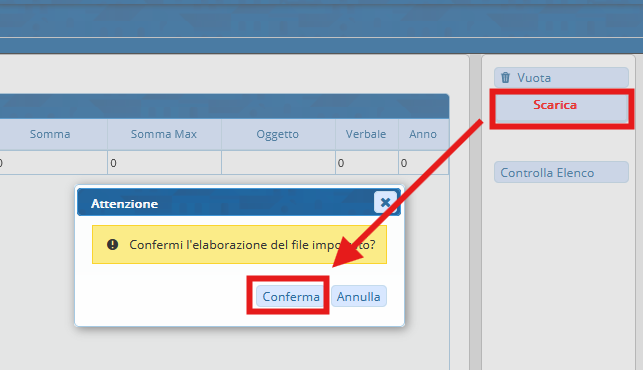 - ATTENZIONE*!: Se sono stati importati altri file non si sovrapporranno a quelli che si vuole importare ora in automatico, ma bisogna cliccare sul pulsante 'Vuota'.