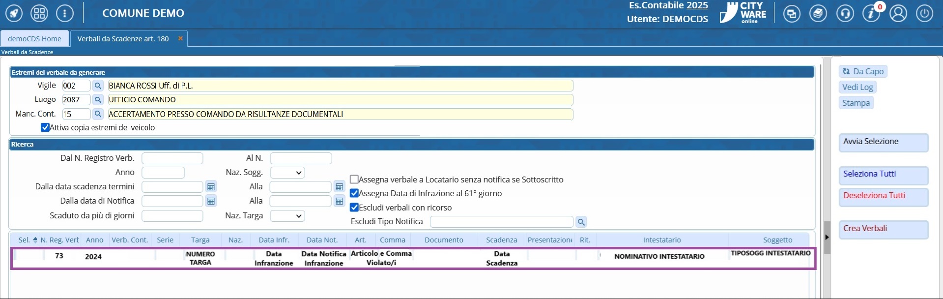 ▶ Codice della Strada ▶ Verbali ▶ Verbali automatici da scadenze
