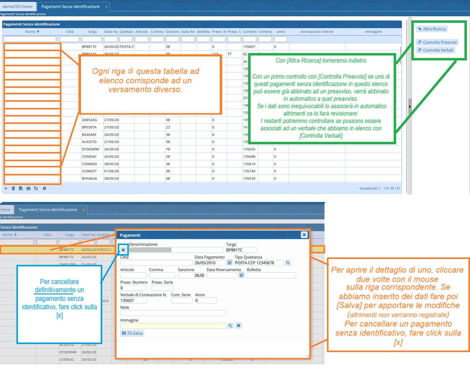 Può capitare che venga effettuato un pagamento per un preavviso o un verbale, ma che quest’ultimo non sia stato inserito o ancora notificato. In questo caso Bollette CCP Senza Nome conterrà tutti i pagamenti ricevuti non ancora collegati