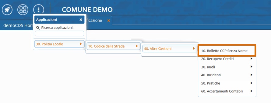 ▶ Codice della strada ▶ Altre Gestioni ▶ Bollette CCP Senza Nome