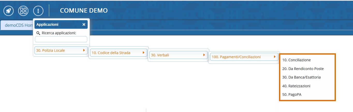 ▶ Codice della Strada ▶ Verbali ▶ Pagamenti/Conciliazioni