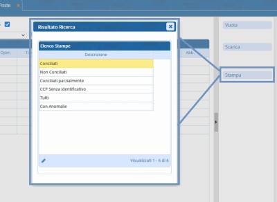 Facendo [Stampa] potremmo selezionare una delle stampe di sistema (che ricordiamo essere personalizzabili su richiesta!) per stampare:
