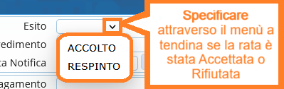 - Se l'Esito è stato ACCOLTO o RESPINTO (cliccando sulla freccia del menù a tendina, potremmo selezionare se la richiesta della rateizzazione è stata accettata o rifiutata)