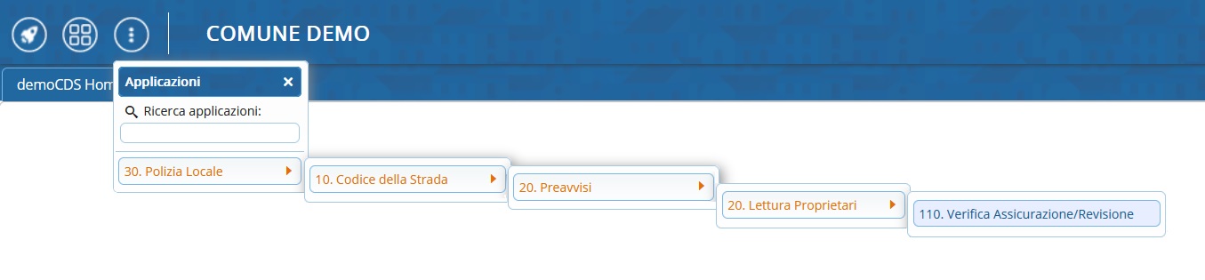 ▶ Codice della Strada ▶ Verbali ▶ Lettura Proprietari ▶ Verifica Assicurazione/Revisione