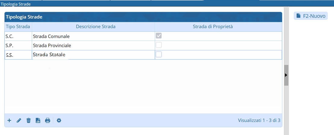 - Come Aggiungere un nuovo Tipo di Strada? cliccando sul comando 'Nuovo'