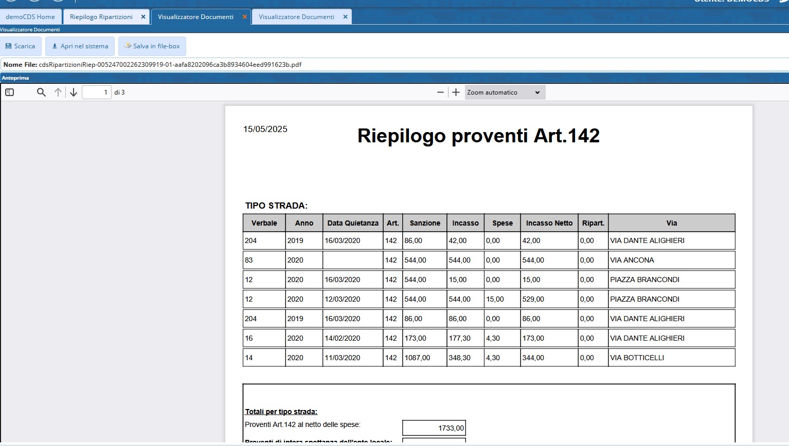 Riepiloghi ▶ Ripartizione Proventi Art. 142