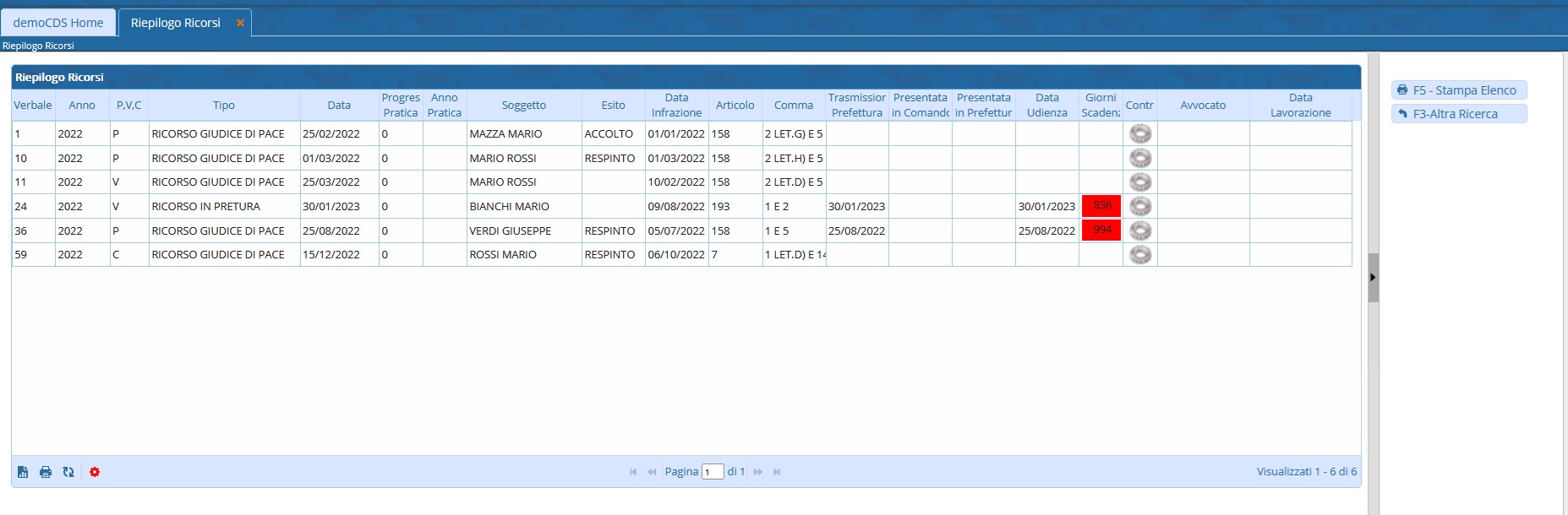 I risultati di questa ricerca saranno tutti i ricorsi che rispecchiano le caratteristiche dei parametri di ricerca impostati nella schermata di prima.
