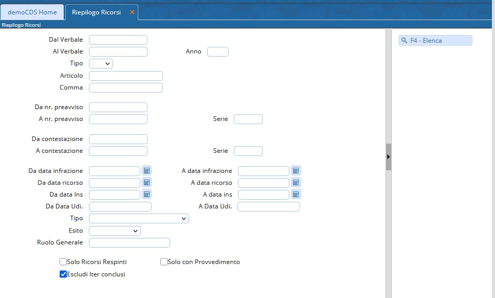 La pagina principale di questa sottovoce sarà simile a quella sottostante, dove potremmo impostare eventuali filtri per agevolare la ricerca. Attraverso il bottone [ Elenca ] si avvierà la ricerca.