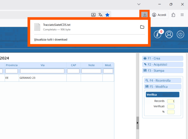 Scelto il caso, verrà scaricato un file txt, che andremmo a caricare sul sito dell'Agenzia delle Entrate