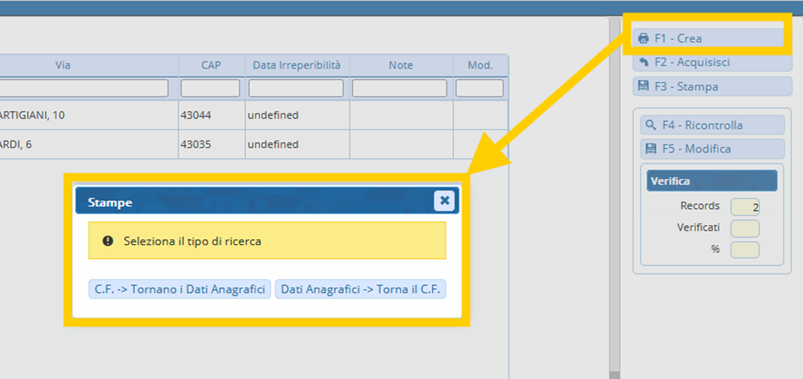 - Con [CF → Tornano I Dati Anagrafici] invieremo i Codici Fiscali in nostro possesso e ci torneranno i dati anagrafici di chi abbiamo inviato