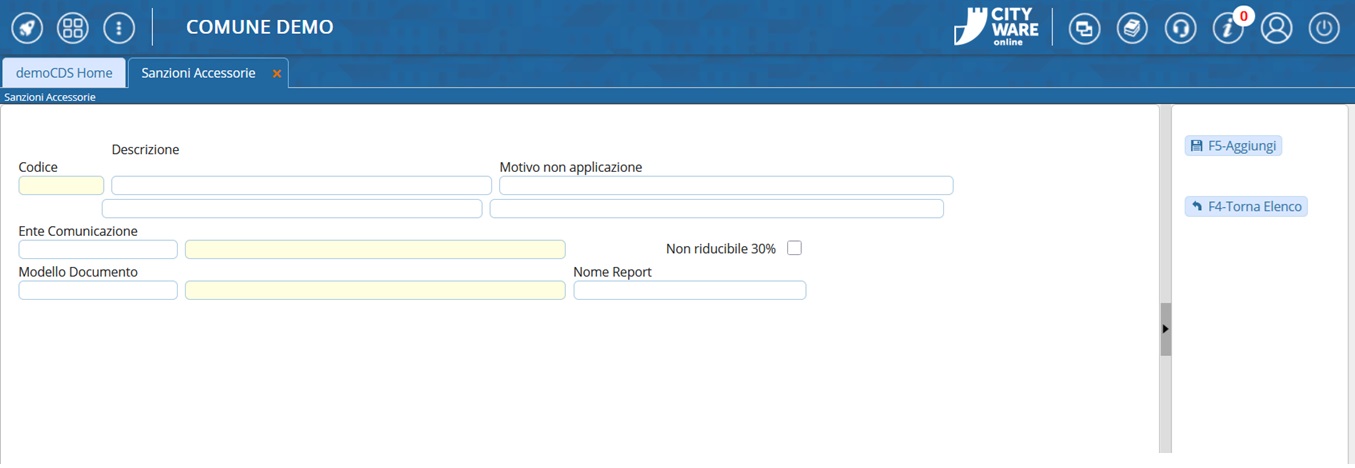 Come aggiungere una nuova Sanzione Accessoria nell'Anagrafica