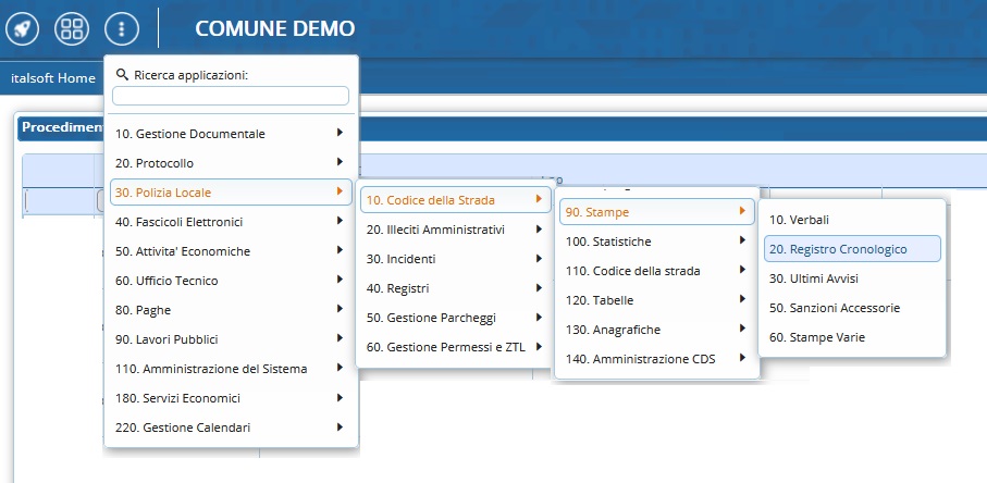 ▶ Codice della Strada ▶ Stampe ▶ Registro Cronologico