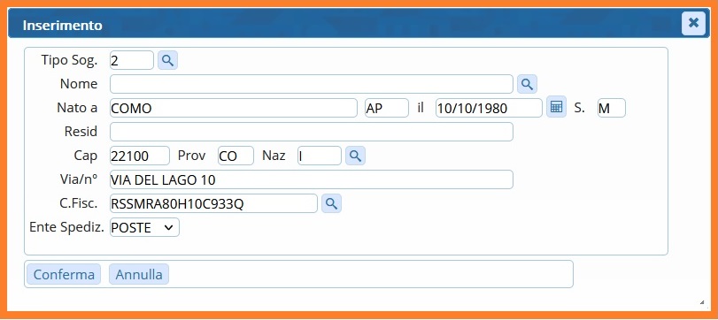 Si aprirà una schermata di template che potremmo compilare con i dati del nuovo sogg.