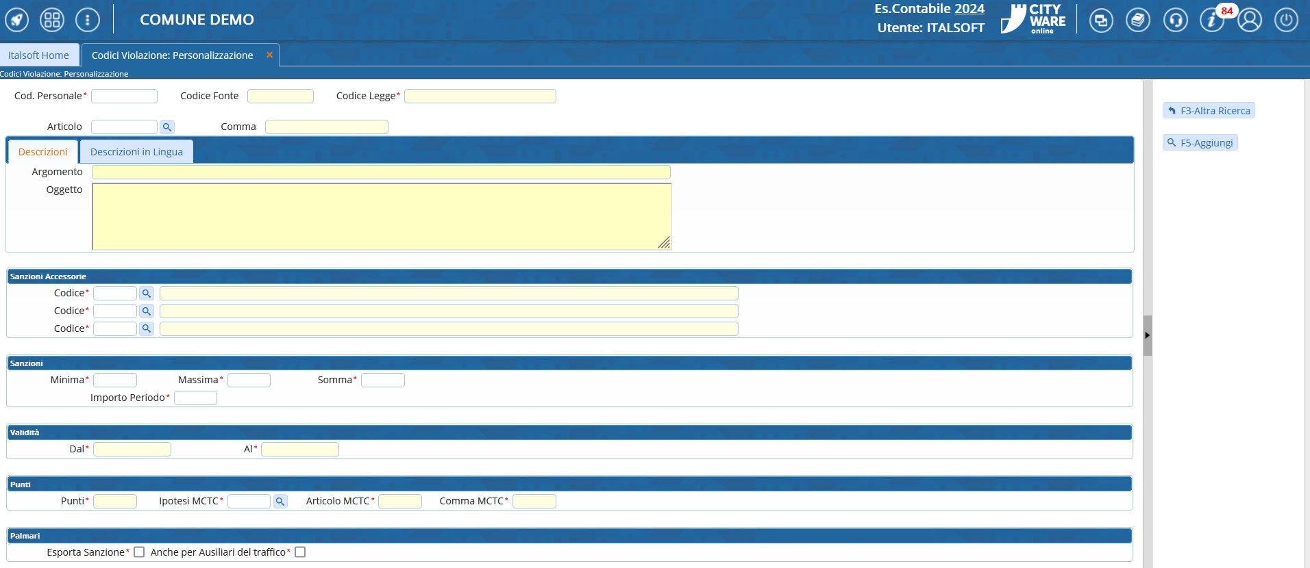 COME INSERIRE UNA VIOLAZIONE PERSONALIZZATA