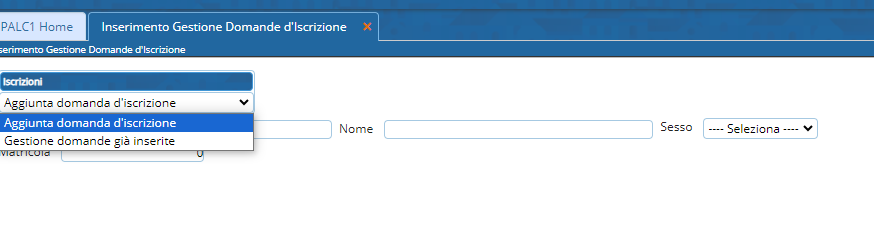 Selezionando nella fase di ricerca Aggiunta domanda di iscrizione è possibile ricercare ed aggiungere un soggetto di cui ci è pervenuta la manifesta volontà di iscrizione. Una volta selezionato si apre una videata che ne permette la gestione e la compilazione dei campi relativi al respingimento ed all'iscrizione. Terminare la procedura selezionando aggiungi a destra della videata.
