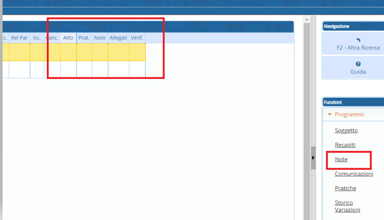 Una volta individuata la persona è sufficiente selezionarla (viene evidenziata in giallo) e sulla destra premere il tasto NOTE