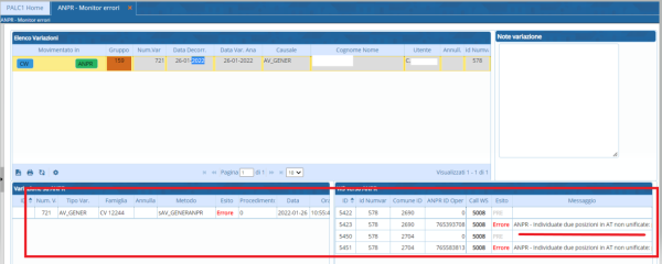 Può capitare che durante il lavoro alcune variazioni non passino in ANPR segnalando un errore, questo monitor ha la funzione di salvare questi errori per essere corretti e non rischiare di perdere alcuni aggiornamenti in ANPR.
