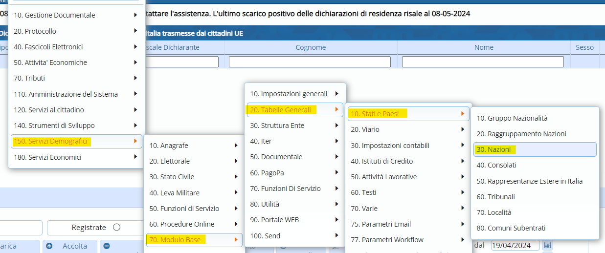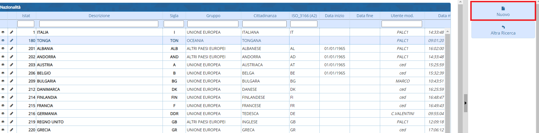 Servizi demografici ⇒ Modulo Base ⇒ Tabelle Generali ⇒ Stati e Paesi ⇒ Nazioni