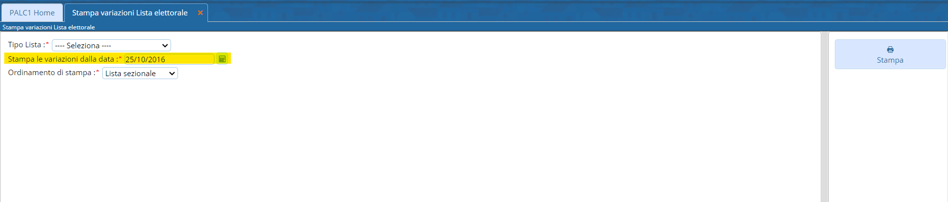 Successivamente sarà possibile inserire la data, dalla quale verranno stampate le variazioni