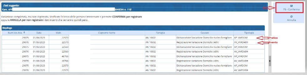 Infine, presenta tutta la variazione completa, registrando in automatico sia la pratica che l’evento. A questo punto cliccando → Conferma