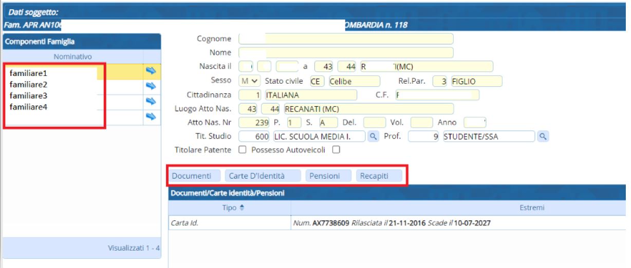 Fatto questo comparirà la scheda per ogni componente della famiglia, da controllare nel caso fosse variato qualche dato cliccando di volta in volta ogni membro; infatti, permette anche di aggiungere vari documenti, carte d’identità ecc… Premere poi → Avanti.